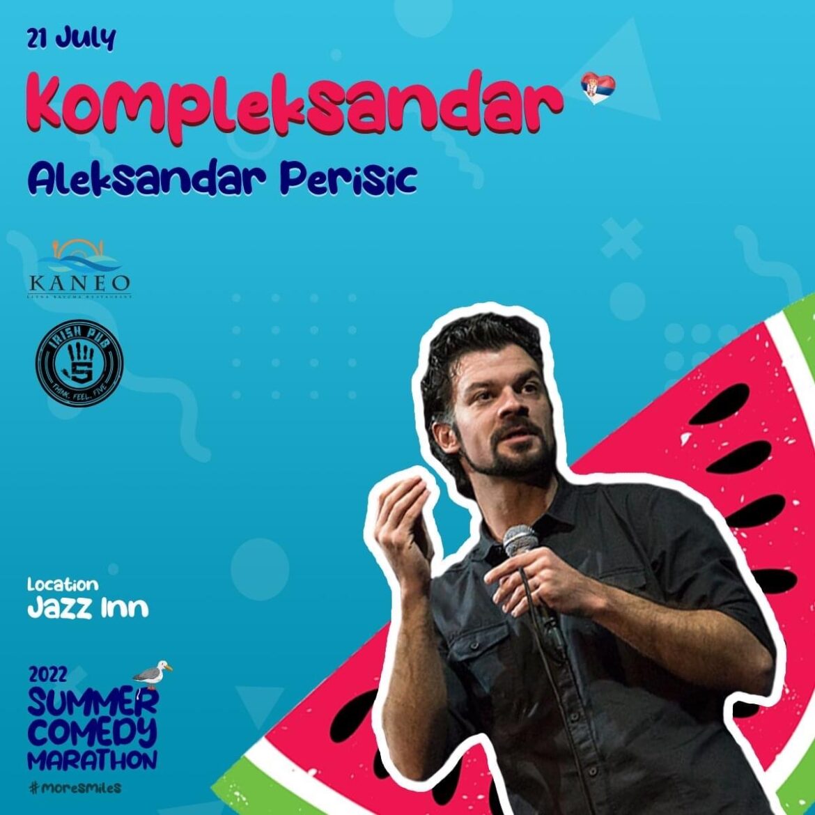 Оваа година SUMMER COMEDY MARATHON ’22 започнува со стендап шоуто на еден од најдобрите балкански комичари Александар Перишиќ со неговото соло шоу “Комплександар“, во Џез Ин.