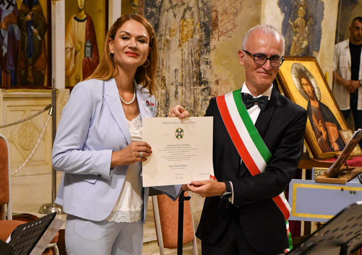 Претседателот на Република Италија, Серџо Матарела, ја одликува директорката на НУ „Охридско лето“, Наташа Поповиќ со Орден „Витез на Редот Ѕвезда на Италија“ . Одликувањето ѝ го додели амбасадорот на Италија во земјава, Андреа Силвестри, кој синоќа во катедралната црква „Света Софија“ потенцира дека ваквото високо признание е за нејзиниот исклучителен придонес во промоцијата на италијанската култура на сцената на фестивалот „Охридско лето“.