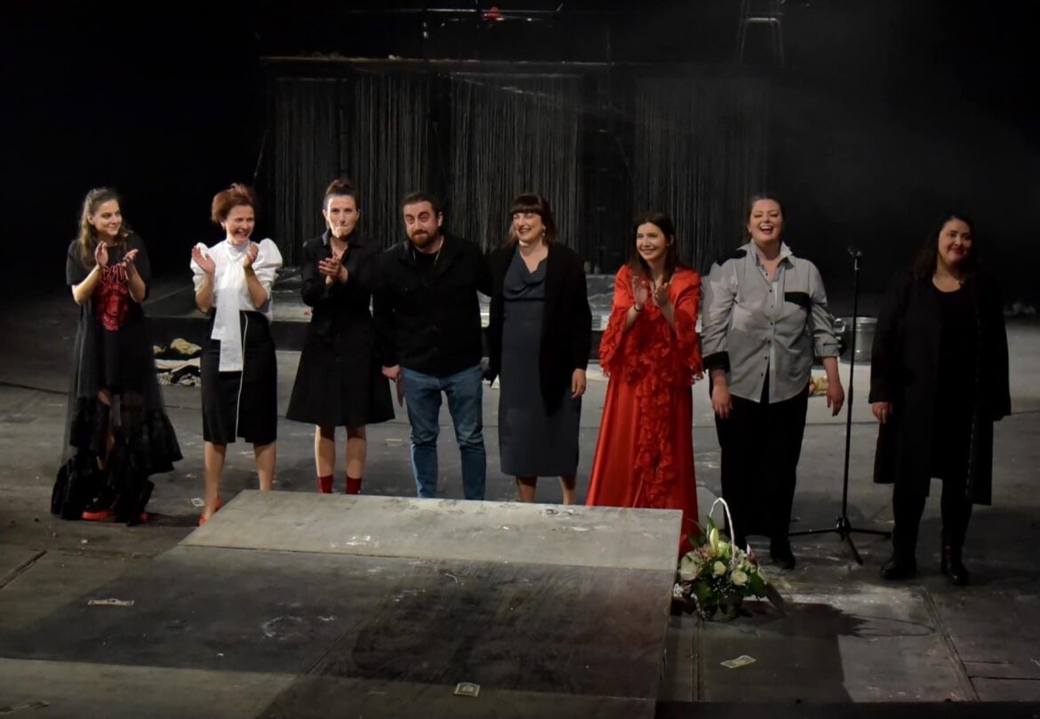 „ Зошто тргнавме од Аристофан, 400 и кусур години пр.н.е.? Во процесот на создавањето на оваа претстава со актерките – текстот излегува директно од нив, се раѓаат автентични текстови кои понатаму создаваат различни ликови и односи во претставата. Знаеме дека античките жени немале формална политичка моќ и права, а доколку имало такви – завршувале трагично (Клитемнестра, Медеја, итн.). Еден од малкуте примери каде што имаме впечаток дека добиваме далеку попозитивна верзија на женска моќ е комедијата на Аристофан „Жени во Народно собрание“, додава таа.