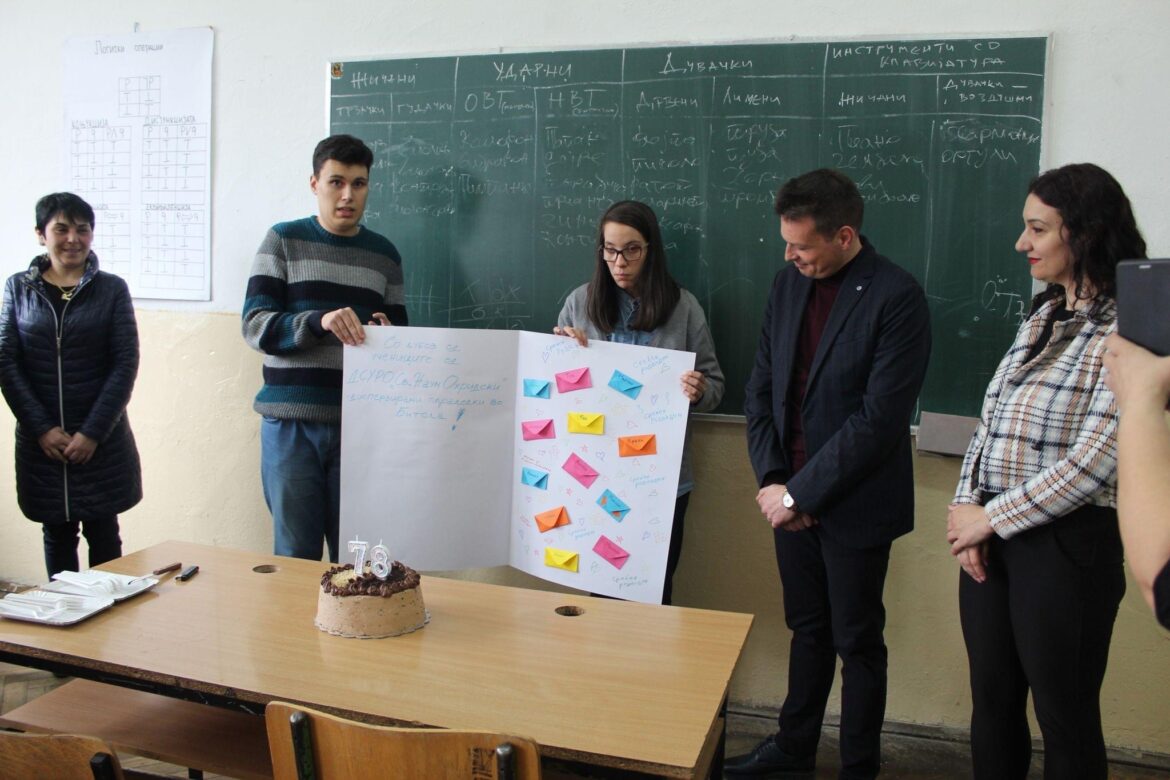 Со торта и подароци, роденденот на библиотеката го прославија заедно со децата, родителите и професорките од Државното средно училиште за рехабилитација и образование „Св. Наум Охридски“ – Скопје кои имаат дисперзирани паралелки во Битола.