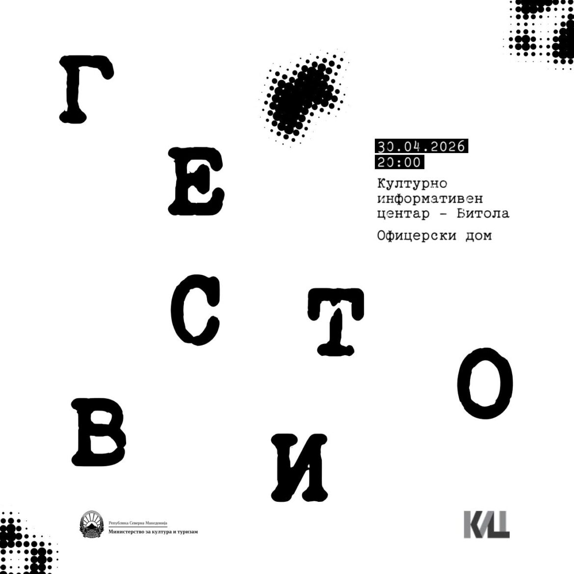 На 30 април во 20.00 часот ќе биде отворена поставката “Гестови” во алтернативниот галериски простор во Офицерски дом-Битола. “Гестови” ја разбива вообичаената кураторска практика со тоа што, наместо концепт во облик на теорија, кураторот Билјана Исијанин го нуди своето визуелно дело како појдовен импулс на што се надоврзуваат делата на Мартин Зетова, Гоце Наневски и Дориан Јовановиќ. “Гестови” допира некои суштински карактеристики што ги носи нашето дигитално постоење и ја нагласува ефемерноста и постојаната промена на меморијата. Сликата повеќе не е стабилна површина, туку поле на можни релации. Видеото е исечено, оттргнато од времето, од постоењето, додека поставката не е чин на приватност, туку постои во корелација со јавноста. Во просторот помеѓу нив се отвора прашањето: што останува кога светот се распаѓа и кој го довршува?