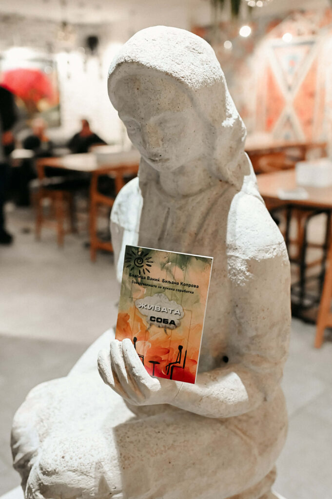 Во Книжевниот клуб Утопија беше претставена книгата „Живата соба“ на Благица Ваниќ и Билјана Копрова. Настанот беше замислен како отворен разговор за темите што книгата ги отвора: односите, личниот развој, емотивната зрелост и искреноста кон себе. Гостинка на вечерта беше Благица Ваниќ, која зборуваше за процесот на создавање на книгата и за тоа како текстот произлегува од реална психотерапевтска практика, но е напишан со јазик близок до секојдневното искуство на луѓето.