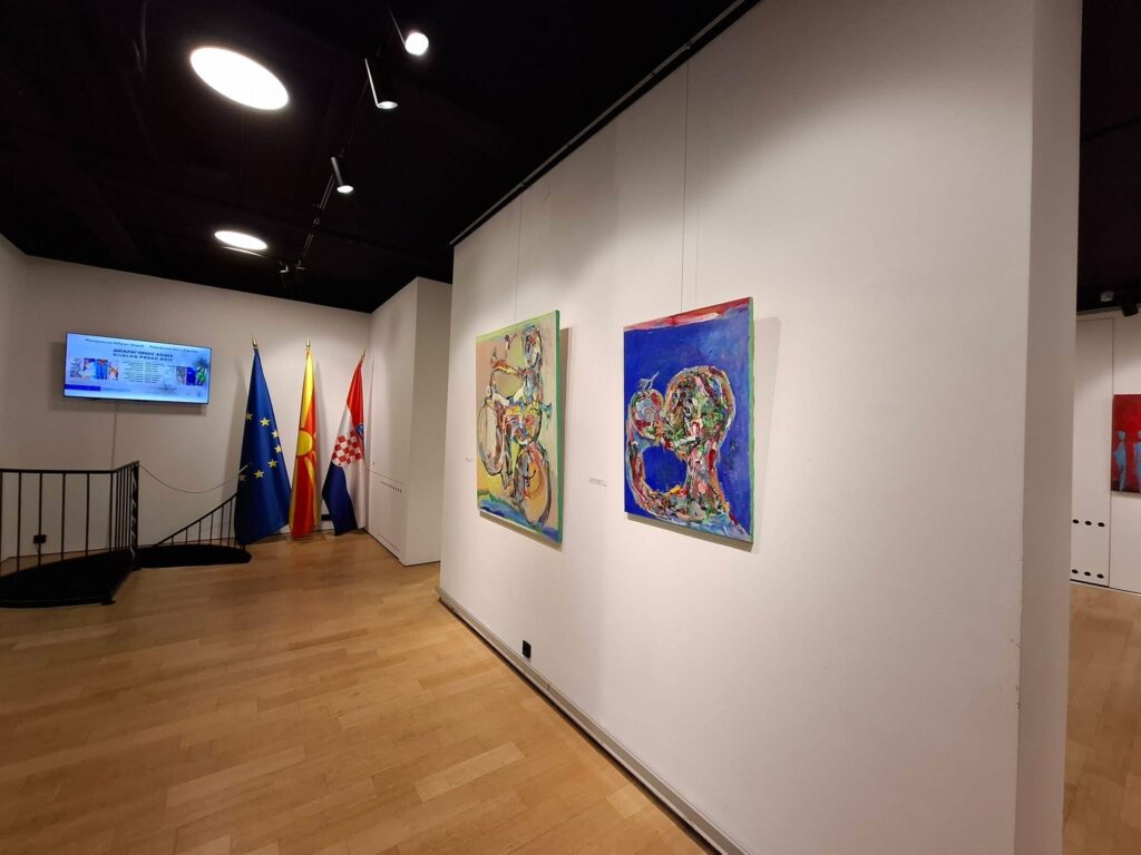 Македонските автори – Сергеј Андреевски, Решат Ахмети,Тања Балаќ и Башким Меџити– носат ликовно богатство, од апстрактни форми до портрети на секојдневниот живот, одразувајќи длабоки традиции и модерни промени. Од друга страна, хрватските уметници Томислав Бунтак, Федор Фишер, Данко Фришќиќ и Матко Векиќ се истакнуваат преку разновидни стилови: од пејзажи и фигуративни композиции до експериментални техники, инспирирани од медитеранското светло и урбаните прикази. Изложбата нуди богат и разновиден ликовен израз преку кој што се потврдува уметноста како универзален јазик што ги поврзува културите и отвора простор за дијалог и меѓусебно разбирање. Во присуство на бројни гости, претставници на локалната и државната власт, дипломатскиот кор, претставници на културни институции и љубители на уметноста, настанот помина во духот на заедништво и размена на идеи. Присутните гости ги поздрави и Амбасадорот на Македонија во Хрватска, Н.Е. Драган Ѓурчевски со што дополнително се нагласи значењето на културната соработка и меѓудржавниот дијалог преку уметноста.