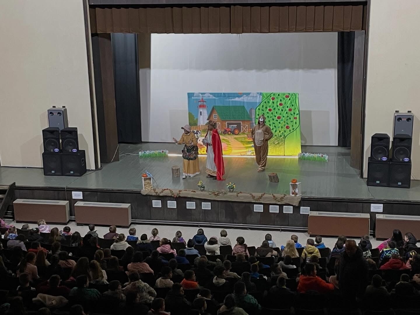 Гласно и силно со актерите на крајот сите деца ја упатија пораката: Јади здрава храна, за да имаш живот без маана. Да ја чуваме и негуваме природта, затоа што таа нас не сака и го чува нашето здравје и здравјето на сите. Во претставата играат: Магдалена Ризова – Черних, Сашо Ристовски, Ема Давчева. Автор и режија : Сашо Ристовски, сценска визуелизација: Дими.