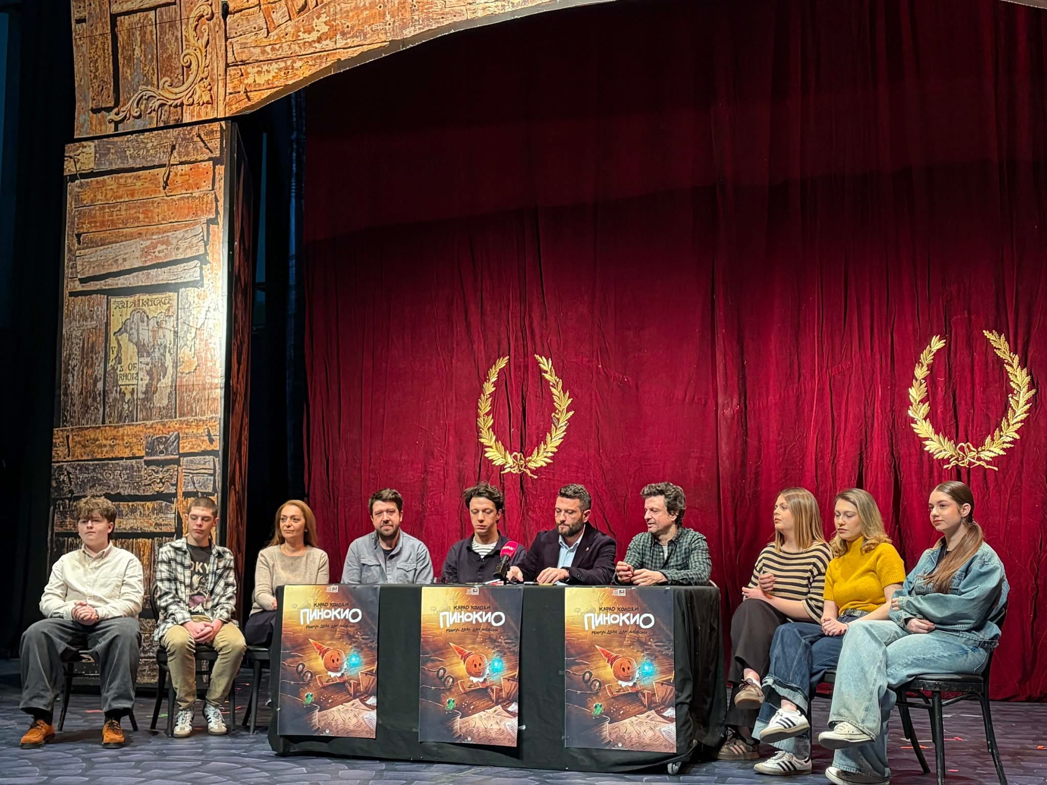 На прес конференцијата беа и децата од Театарска школа „Бабец“, кои учествуваат во претставата и несебично, со вистинска посветеност и изненадувачка професионалност ги носат своите улоги: Софија Наумовска, Ана Анѓелевска, Веда Мавровска, Стефан Доневски, Матеа Василевска, Лина Трампевска, Николина Јанкоска, Ана, Марија Каранфиловска, Лина Христовска, Војдан Мавровски, Николај Илијевски. Тие се дел од целиот процес – од првата проба до денес – растејќи заедно со приказната и внесувајќи ѝ искрена детска енергија што не може да се одглуми, туку само да се живее. Официјално беше најавена и соработката со добро познатиот македонски илустратор Михајло Димитриевски, кој оваа година се потпишува зад дизајнот на рекламниот материјал и визуелниот идентитет на претставата, како и зад уникатниот дизајн на билетите. Со неговиот препознатлив стил, „Пинокио“ добива дополнителна визуелна магија уште пред да се крене завесата.