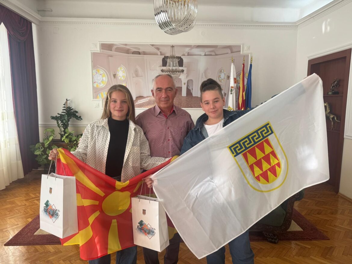 Денес градоначалникот Тони Коњановски ги прими во својот кабинет Ана Ванчевска (14) и Алексеј Ивановски (13) ученици во ОУ „ Даме Груев “ од Битола, кои ќе ја претставуваат Македонија на „ Детска Евровизија 2024 “ со песната „ Маратон “, а со тоа изрази задоволство што овогодишните претставници се токму млади луѓе од нашиот град, кои ќе ја претставуваат Македонија и Битола.