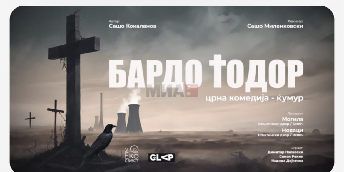Сатиричната комедија „Бардо Тодор“ денеска премиерно во Могила и Новаци Црната сатирична комедија „Бардо Тодор“, изготвенa во продукција на „New Clаp“, а поддржана од Центарот за истражување и информирање за животната средина „Еко-свест“, премиерно ќе се одигра денеска во општините Могила и Новаци. Автор на претставата е Сашо Кокаланов, а режисер Сашо Миленковски. Како што информираат од „Еко Свест“, „Бардо Тодор“е црна сатирична комедија која зборува за страшните последици по животот на луѓето кои живеат како први соседи на една термоцентрала со коп на јаглен, приклештени во противречноста – убиецот да им е и главен работодавец. Таа ќе се игра на отворено, за да му се даде можност на Комбинатот (РЕК Битола) да биде лик во комедијата. Од „Еко-свест“ нагласуваат дека ваквиот тип на претстави се наменети да допрат до широката јавноста за потребата да се направат промени во однос на производството на електрична енергија од фосилни горива, што носи страшни последици врз здравјето на луѓето. Оттаму се надеваат дека пораката што ја испраќа претставата ќе допре до граѓаните. Претставата која на сатиричен начин носи силна порака ќе биде одиграна во општинскиот двор во Могила во 12 часот, додека, жителите на Новаци во општинскиот двор ќе имат прилика да ја проследат во 18 часот. Оваа црна комедија е наменета за возрасната публика, а на 10 јуни ќе биде прикажана и во Битола.