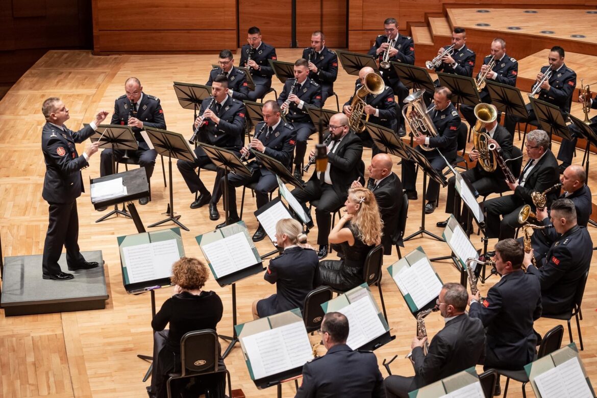 Со концерт на Воениот оркестар на Армијата во Филхармонија започна новото издание на фестивалот „Денови на македонската музика“. Диригент беше Горан Илијевски. На концертот беа изведени дела од македонските композитори создадени за голем дувачки оркестар:Благој Цанев, Горан Илијевски, Живојин Глишиќ, Михајло Штерјев, Томе Манчев, Илија Илиевски, како и композиција за дувачки оркестар од Густав Холст.Воениот оркестар во состав на баталјонот за Почести е единствен професионален дувачки оркестар од ваков карактер во државата, чија мисија е учество на протоколарни активности и воени свечености во организација на Армијата и на највисоките државни институции. Формиран е во 1944 година, во првите децении опстојува во рамките на поранешната ЈНА во состав на третата армиска област во Скопје, а по осамостојувањето на државата прераснува во голем дувачки оркестар и претставителен сегмент на Армијата. Оркестарот реализира повеќе концерти во склоп на активностите на Армијата и во соработка со локалните самоуправи во во повеќе места во државата, но и редовно ја претставува на меѓународен план.Програмата на 47. „Денови на македонската музика“ е во знакот на извонредното творештво на македонските композитори од поголем обем: симфониско, оперско, дела за гудачки оркестар, но и камерен опус. Со концертите ќе бидат одбележани и повеќе значајни јубилеи, на композиторите Томислав Зографски, Михајло Николовски, Стојче Тошевски, Живојин Глишиќ, Тодор Трајчевски, но и јубилеите на МРТВ – 80 години од основањето и НУ „Танец“ – 75 години од основањето.Програмата на фестивалот вклучува и премиерни изведби на дела од помладата генерација, како и изведби на дела што се вбројуваат во ремек-делата на сите генерации композитори. Со свои концерти ќе се вклучат и Националната опера и балет, Филхармонијата, камерниот ансамбл „Алтус“, а ќе заврши со традиционалната трибина посветена на состојбите со творештвото на македонските композитори.Уметничкиот одбор и СОКОМ, при кониципирањето на програмата, поаѓаат од фактот – домашното уметничко творештво зависи од сите нас, од нашата одговорност и од нашата грижа да овозможиме создавање, изведба и промоција на дела што ги означуваат нашите минато, сегашност и иднина.
