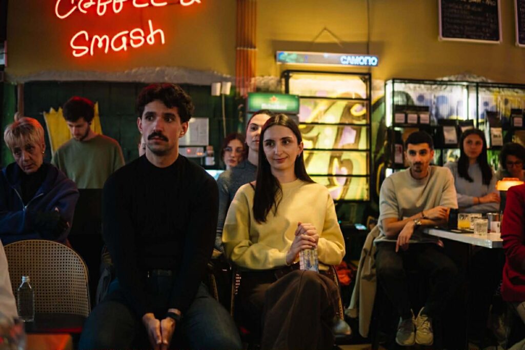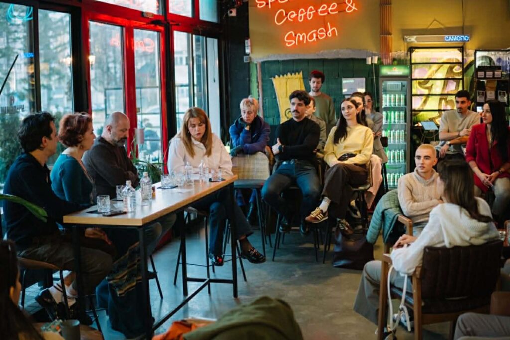 Од театарска перспектива, актерот Никола Стефанов ја отвори темата како парадоксално искуство. „Љубовта кон театарот е парадокс – веруваш во нешто што не постои“, изјави Стефанов, додавајќи дека тишината е потешка за изведба од текстот. „Во тишината нема простор за лага. Среќата не се глуми. Таа се живее.“ Разговорот го модерираше проф. д-р Марина Кузмановска, која дискусијата ја постави во психолошка и културна рамка, отворајќи ја љубовта како динамика што го обликува личниот и колективниот идентитет, а не како романтичен мит. Музичкиот сет на BerryQyat дискретно ја одржуваше атмосферата, додавајќи звучен контекст на разговорот и создавајќи амбиент што ги поврза зборовите со телесниот ритам на просторот. По завршувањето на настанот, разговорите продолжија во неформални групи, што потврди дека темата ја надмина рамката на панел-дискусија и се претвори во лично преиспитување. Организаторите најавија ново издание на „Свесност live session“ на крајот на март, со нова тема што повторно ќе ја отвори врската помеѓу културата, психологијата и современото живеење.